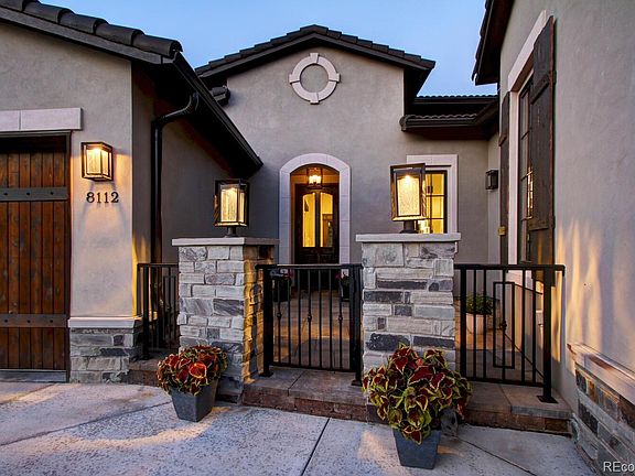 Style and Sophistication in this Stunning Ravenna Custom Home! 3 Bedrooms + Study, 4 Bathrooms, Finished Basement and serene outdoor living! Features of this extraordinary Ranch-style home include – custom finishes throughout, high-end lighting, multiple outdoor living areas, security system, 4 fireplaces, gleaming wide plank hardwoods, gated/golf course community, $120K in landscaping improvements, 3-car finished attached Garage, security system, tankless HW heater, finished walk-out Basement w/wet bar and MORE! Sophisticated finishes, high ceilings w/wood beams, expansive windows, bright interior and open concept floor plan provide the backdrop for this home’s comfort and livability. Spacious Living Room features a cozy fireplace w/floor-to-ceiling surround, gourmet Kitchen outfitted w/island, breakfast bar seating, Granite/Quartz counters, glass tile backsplash, Bosch appliances, walk-in pantry and eating area. Main floor Laundry, private Study/Home Office and Primary Retreat featuring trey ceiling, ceiling fan, access to outdoor living area, walk-in closet w/convenient Laundry access plus en-suite Spa Bathroom complete w/modern tile, finishes and fixtures. The Finished Walk-Out Basement offers 12 ft. ceilings w/wood beams plus 2,307 SF of additional living space featuring a spacious Family Room w/fireplace and full wet bar, Game/Bonus Room and 2 generously sized secondary Bedrooms each w/en-suite Bathrooms. Entertaining or casual living extends to the tranquil outdoor living areas featuring wrap around covered deck/patio, dual fireplaces, water feature and fire pit providing a true outdoor oasis for enjoying the stunning views and beautiful Colorado weather. Don’t miss the opportunity to be a part of this exclusive Ravenna community!