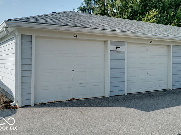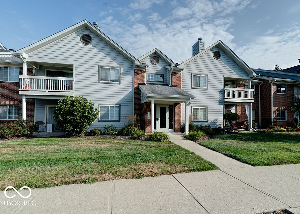 Come see this Hidden Creek condo with 2 beds and 2 full baths in the popular Traders Point area. This 1072 sq ft. unit is on the main floor and backs up to a beautiful open area with huge pine trees right off your covered patio. The floor plan is open with a split bedroom design for privacy, and the neutral colors brighten the rooms along with the natural light allowing flexibility for decorating. This condo features walk-in closets in each bedroom, newer HVAC, and new carpeting in the main areas. It has been freshly painted and professionally deep cleaned. The HOA covers the roof, exterior, lawn care, and snow removal. Hidden Creek has so many amenities such as a pool, tennis courts, weight room and pickle ball court. The condo's provide a level of security with a keyed main entry to the building and a buzzer to let you know guests arrive. Additionally it has a single car garage and a dedicated parking spot in front of the building for your convenience as well as an in-door storage closet for those out of season clothes, extra kitchen gadgets, or sports equipment. You will love the location since you're just minutes from I-65, I-465, Eagle Creek Park, the airport, Zionsville and Whitestown with all of the best shopping and dining located there!