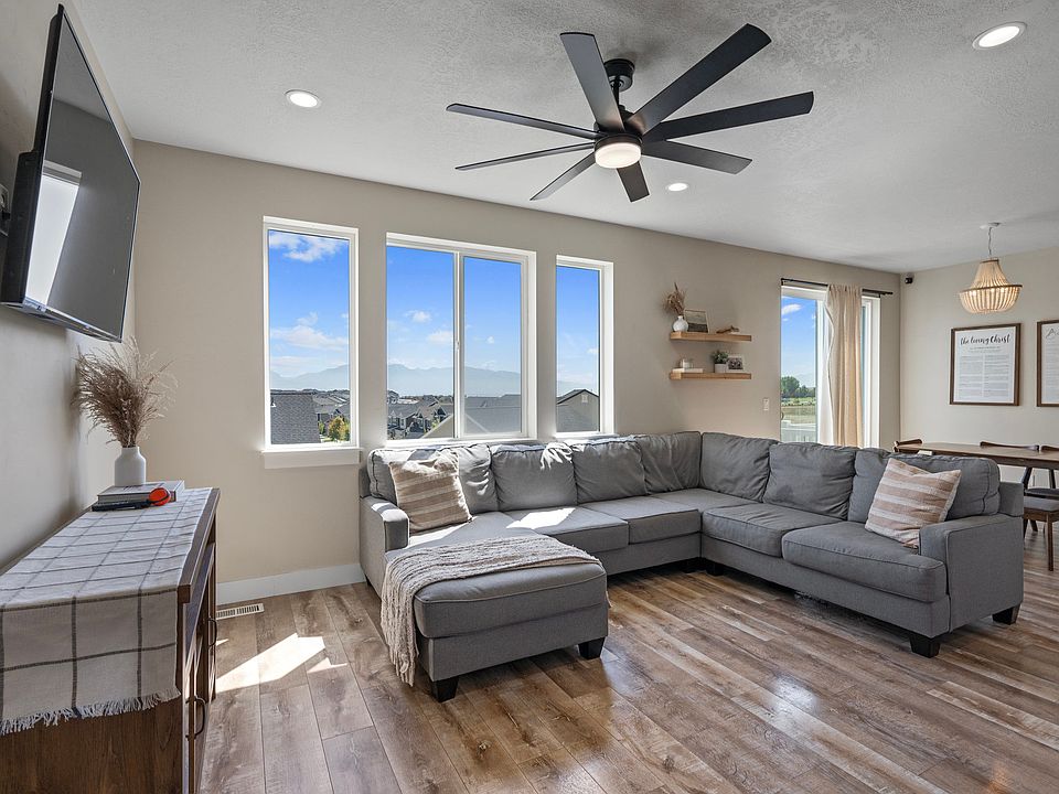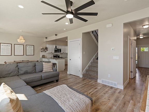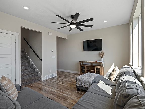 Seller offering generous BUYER INCENTIVES that may be applied toward closing costs or interest rate buydown. Using our preferred lender will add even more incentives. Including 2/1 buydown scenarios to reduce monthly payments. This townhome checks all the boxes! Affordable, well designed, contemporary finishes and backs onto a large open space with grass and views. It's in a prime location on the border of Eagle Mountain and Saratoga Springs. Minutes away from shopping and great eating spots. This home has upgraded features like lighting, LVP flooring, granite countertops, and custom kitchen backsplash. 9 ft ceilings in the main area make the space feel more open and airy. There is an additional living space in the fully finished basement, with a built-in entertainment cabinet. No projects when you move in, just enjoy! Square footage figures are provided as a courtesy estimate only and were obtained from last appraisal. Buyer is advised to obtain an independent measurement.