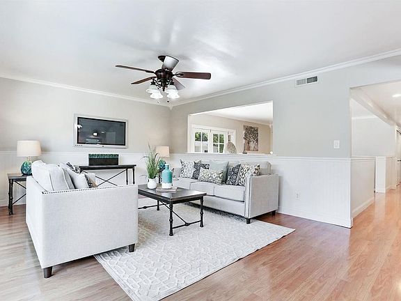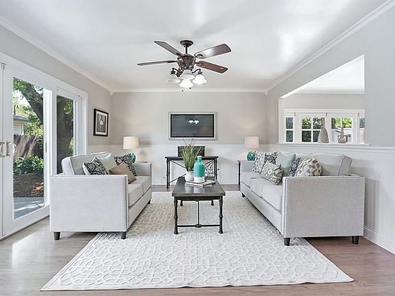 This picturesque home has been updated and maintained to perfection. The formal living/dining room has a relaxing fireplace and french doors leading to the back patio, large yard and separate studio perfect for an office, bonus room, art studio or playhouse. The spacious family room has access to the functional side patio and is open to the kitchen with granite counters/island, gas cooktop and dining nook. Updated master bath, crown molding, great natural light and a convenient location!
