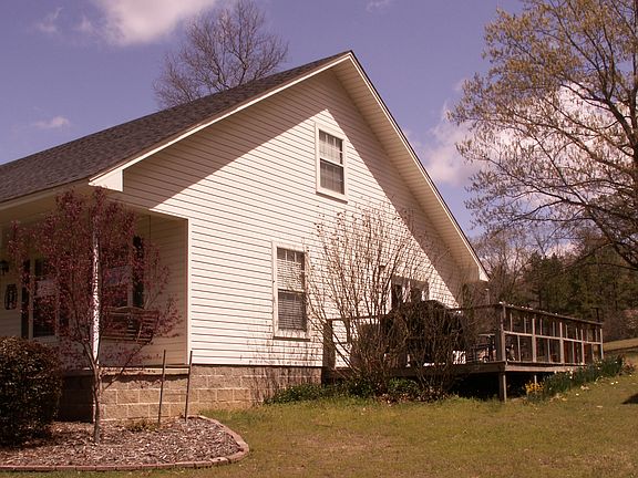 3 bedroom, 2 bath custom home in the country yet minutes from town on a paved road. This beautiful home features an open concept kitchen, dining and living room with the master bedroom and bath on the main level. House has a lot of built in features. Bathroom has a large Jacuzzi tub, double sinks and separate toilet area. It also features a large playroom/workout room and a wood deck. Full covered porch on front of the house. Roof, Heat Pump and refrigerator have been recently replaced. Kitchen appliances stay. House has a walk-in attic and plenty of storage. Grounds have a lovely landscape and large metal building for storage. House has been immaculately kept and is move-in ready.
