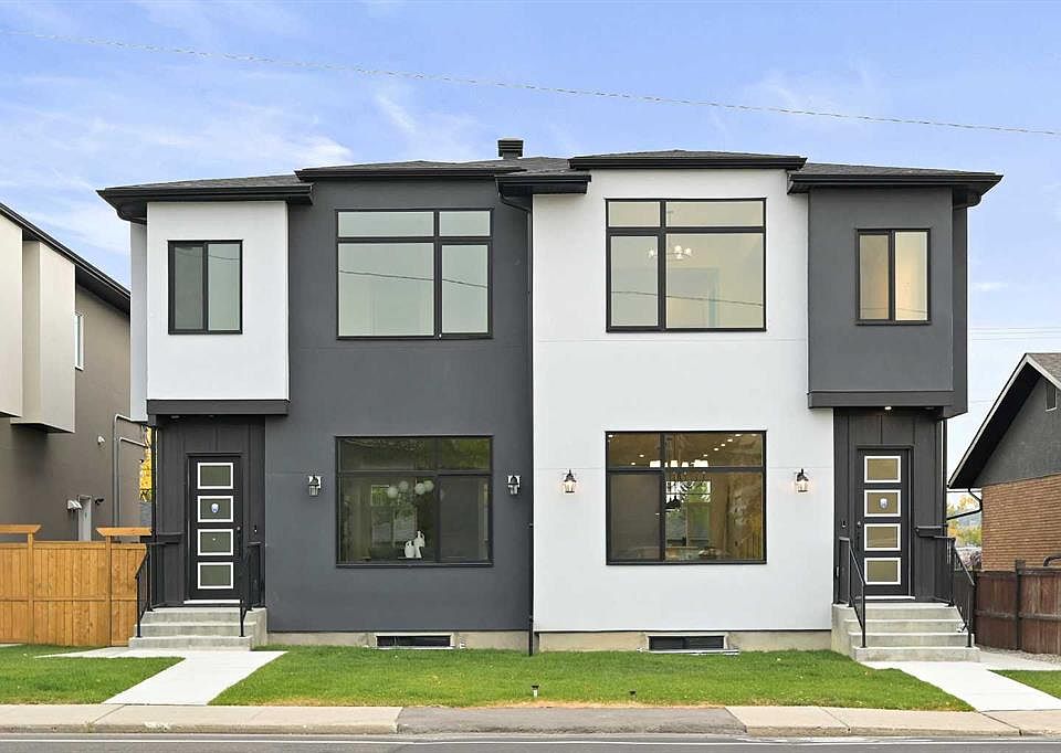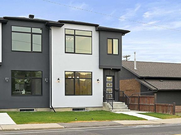 I'm excited to present this brand-new, move-in ready luxury infill with double garage and situated on an oversized 27' wide lot located on a convenient street in Bowness. This property boasts elevated design and incredible functionality, featuring a legal 2-bedroom basement suite and a sunny south exposed front with expansive valley views from the upper floor. Every detail was thoughtfully selected, from the wide-plank modern floors to the curated lighting and premium finishes throughout. Step inside to a bright, open-concept main floor with 10' ceilings, oversized windows and neutral tones that create an airy, inviting vibe. The large, well-lit dining room is perfect for bigger families and/or hosting guests and shows off a vibrant and colourful feature wall, which flows seamlessly into a designer kitchen featuring modern warm toned cabinetry, paired with beautifully coloured glass backsplash, quartz countertops, matte black hardware, a huge walk-in pantry with built-in shelving, and a perfect-sized center island with bar seating with more natural wood tones, bringing everything together beautifully. The upgraded stainless steel appliance package includes an oversized sub zero fridge with french doors, a gas cooktop with stylish hood fan, and a thoughtfully placed wall oven and microwave. The rear living room is wide and spacious featuring additional large windows plus a cozy gas fireplace with stone surround and custom mantle, and which leads you out to the large backyard, which features an oversized concrete pad, perfect for end of the day BBQ's and lounging. An enclosed mudroom with a large closet area and a sleek powder room that comes with a raised matte black sink complete the mainfloor. Upstairs contains the three large bedrooms, all with trayed ceilings, including the primary bedroom which is a true retreat that features a large walk-in closet with several custom built-ins plus a hotel like ensuite. Enjoy heated tile flooring, dual sinks, quartz countertops, matching tile surrounds, plus a free standing soaker tub and an oversized glass shower with rain shower head and roughed-in for steam. The upper laundry room comes with a sink, quartz countertops, additional wood toned cabinetry, and is situated beside the stylish full bathroom which features a tiled tub/shower combo. Downstairs features the thoughtfully designed legal 2 bedroom suite and features 9' ceilings, luxury vinyl plank flooring, wonderfully warm toned cabinetry, stainless steel appliances and lots of pot lighting. A full bathroom with elegant tile is also featured plus a dedicated laundry room, separate side entrance and storage, making this perfect for rental income or multigenerational families. Additional features include roughed in A/C, built-in speakers and each room wired for Cat5 data. This is truly exceptional value! Call your favorite agent today to view the excellent inner city new build.