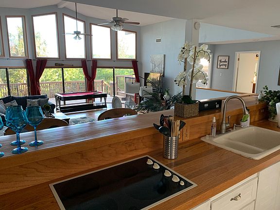 Waterfront custom built homeNewly renovated homeAdditional downstairs officeA-frame style houseOwn laundry roomUpdated laminate flooringNewly installed ceiling fans