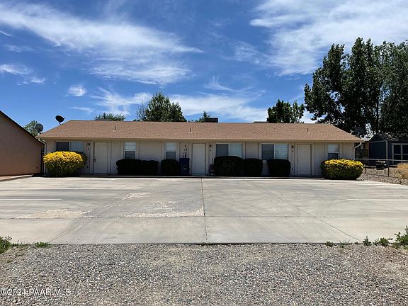Excellent income opportunity for a well maintained tri-plex in Prescott Valley! This property offers a strong rental history with upside rents. Each unit has fenced backyard with patio and private storage unit. Interior features full size washer & dryer, 1 bed, 1 bath, spacious kitchen open to great room! Large parking lot out front with 2 reserved spots per unit plus guest parking. Low maintenance stucco exterior. All units have been updated. Units are professionally managed. Gross rents are $37,200.