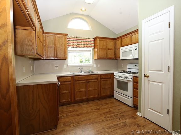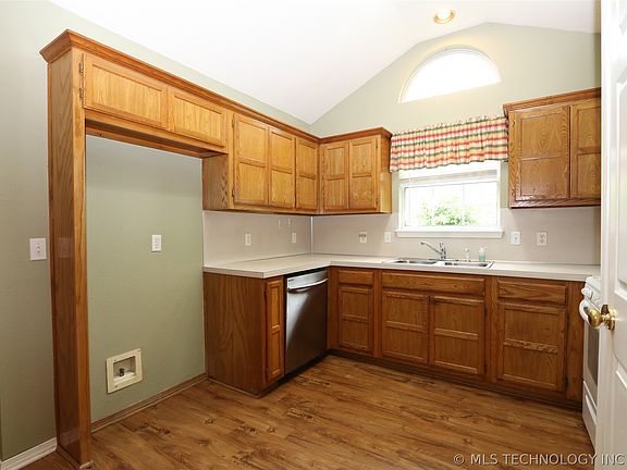 Move-in ready with open floor plan. Large living room features laminated wood flooring vaulted ceilings and corner fireplace. Kitchen has pantry and is open to dining area with a bay window. Huge enclosed back patio has a hot tub which stays with the property. Front porch is covered and ready for your patio chairs. Large back yard has 2 storage sheds and a two-level storage/workshop building with electricity plus a large in-ground storm shelter. Property is offered as-is
