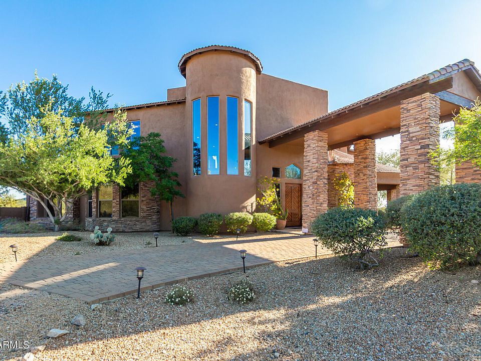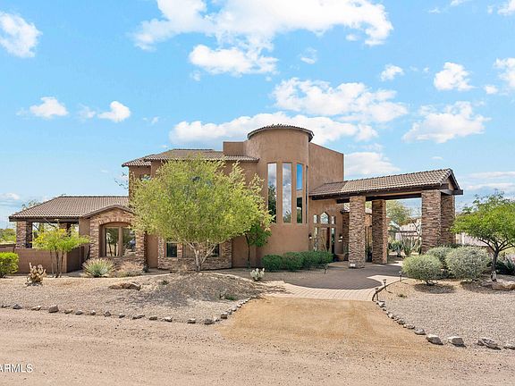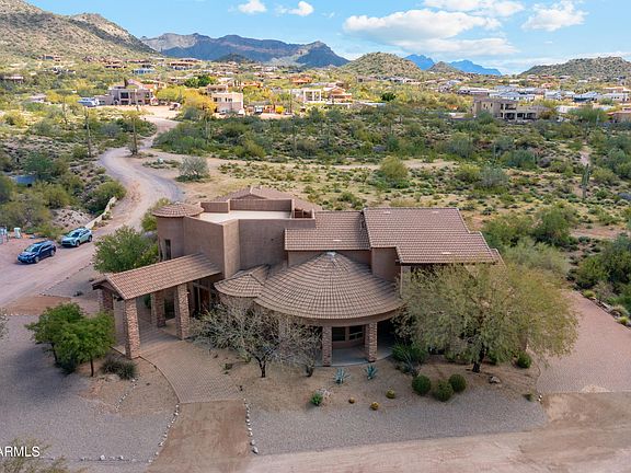 This beautiful custom home has plenty of room to entertain your family and friends. There is a guest suite downstairs with patio exit to the above ground spa! The downstairs also has a den/office and a dedicated game room perfect for a pool table or game table! The upstairs has the owners suite with attached exercise room, 2 large bedrooms and a good size loft! Did I mention that there is a steam room in the owners bathroom? If you are in need of a private desert oasis with gorgeous mountain views (rooftop deck)and no HOA this might be the home for you. Bring your toys as there is plenty of room in the expanded four car garage. In addition, there is a well with a 5000 gallon holding tank. Come and take a look soon!