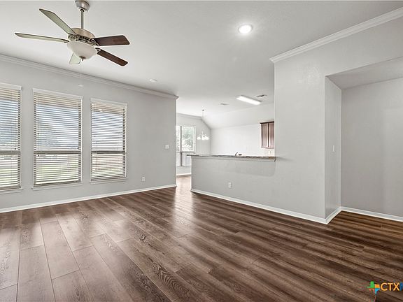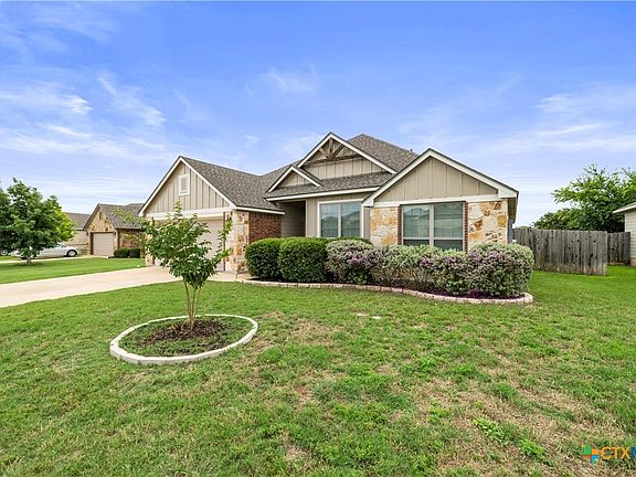 Tucked into a cul-de-sac in the Hills of Westwood, this beautifully designed 4 bedroom, 2 bath Craftsman-Style home offers comfort and convenience. Inside, you'll find a thoughtful split floor plan, a spacious open-concept living area with built-in entertainment shelving and a kitchen that checks every box—granite countertops, stainless steel appliances, a large island and plenty of cabinet storage. The primary suite is a true retreat with a walk-in shower, soaking tub and a walk-in closet. Outside, enjoy the covered back patio—perfect for relaxing or entertaining. With a brand new roof, this home is truly move-in ready. Located in Belton ISD with access to a neighborhood pool and easy proximity to Belton Lake, Scott & White, shopping and dining.