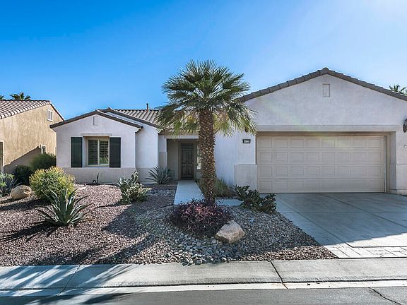 Welcome to this beautifully maintained and very popular Madera model in the highly sought-after 55+ community of Sun City Shadow Hills. Great price for one of the larger models, this 2-bedroom, 2-bath home also features a den perfect as a potential office or flex space. The expansive open-concept floor plan is light filled and boasts spacious living areas with high ceilings and Travertine flooring throughout. The well-appointed kitchen with large island is a cook's dream with granite countertops and stainless appliances plus a counter bar and breakfast area. The primary suite is a relaxing retreat with an en-suite bathroom featuring a soaking tub and walk in shower plus a generous walk-in closet. The guest bedroom is well separated for privacy and with adjacent bathroom for convenience. Step outside to a serene backyard oasis with breathtaking mountain views, a putting green and space for a private pool/spa or other use... so many options for outdoor dining, relaxing or entertaining.  Ideally located near the Montecito Clubhouse, experience resort-style living with access to golf, pools, fitness centers, and an abundance of social activities in this vibrant community. Don't miss out on this exceptional home--schedule your showing today!