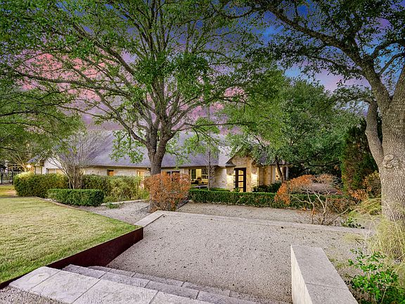 Located on a beautifully wooded 2.3 acre lot in the elite Rob Roy neighborhood, this elegant 5 bed /4 bath (4302 sq ft) provides exceptional privacy and seclusion. Brimming with lush greenery, this immaculately landscaped home is tastefully concealed from street view. A recently updated and contemporary indoors transitions seamlessly into a stunning outdoor back patio with a backyard that appears straight out of a fairy tale. United by an open floor plan, the formal living and dining room boasts two fireplaces while the kitchen opens to an inviting family room. Abundant windows illuminate vaulted ceilings throughout, creating crisp and clean lines. An expansive first floor master suite features a study and master bath with jetted tub and double vanity. A separate game room gives further options for entertaining, with an attached 4-car garage meeting all storage needs. Seated in the award winning Eanes School District, this peaceful hideaway is the ideal setting to raise a family and get back in touch with nature.