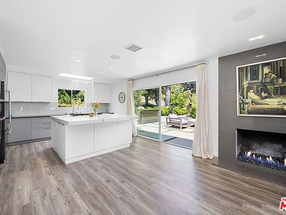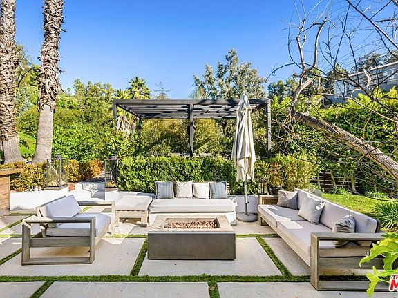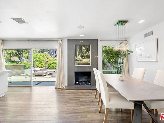 Architecturally modern, updated home in tranquil canyon minutes from Sunset Strip and off Laurel Canyon. Completely custom, this two bedroom, two bathroom, approx 2,000 + sq ft home is a celebration of indoor/outdoor living. The open floor-plan has a large living room with fireplace, open gourmet kitchen with stainless steel appliances, dining room and den flowing to large patio yard with fire-pit, lounge and outdoor dining area with BBQ. The sliding glass doors lead to paved grass lined pathways offering mountain and canyon views, with breathtaking landscaping. The primary suite opens to a zen like garden, with an above ground hot tub surrounded by trees, fountains and Saltillo pavers. Multiple patios with walls of glass provide bright airy spaces. Home is equipped with an alarm system, gated entry, 2 car garage + abundance of storage. Laundry room off garage level. Perfect for entertaining or relaxing on the grounds, as this oasis is truly as calming as it is stunning! Other highlights include 17k sq Ft Lot (.39 Acres) including room for a swimming pool! Located on cul de sac, not through street.