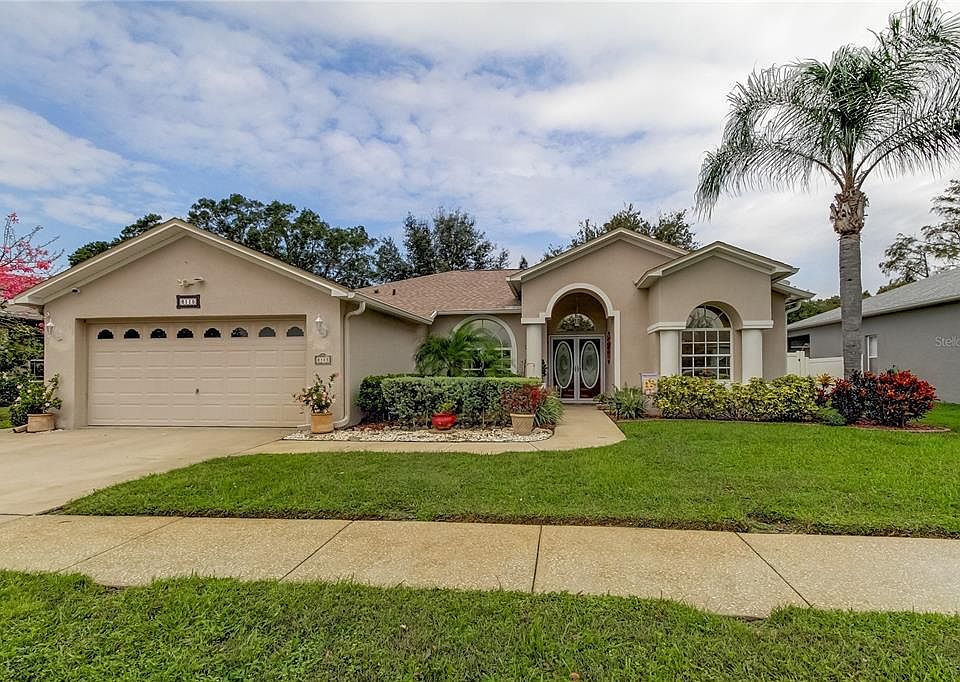 It will be so nice to come home to this lovingly maintained and upgraded Pool home with so many great features. From the moment you step through the welcoming double doors you will appreciate the open layout and architectural details and view out to the free form pool. With Ceramic tile in the wet spaces and wide plank luxury vinyl flooring throughout, there is beauty and ease of maintenance. The chef’s kitchen has ample counter space and cabinets, a pantry closet and a bright airy dining area with sliders to the lanai and pool. The split bedroom plan features a large primary bedroom with sliders to the lanai and pool and en suite bath that has a double sink vanity and both garden and walk in shower. The covered lanai is quite large and overlooks the beautiful free form pool with automatic pool sweep, fenced yard with lush landscaping and privacy. The location is conveniently close to schools, shopping, restaurants, medical facilities and entertainment venues. Only about 45 minutes away from Tampa International Airport, Downtown Tampa, St. Peter or Clearwater Beach. The Roof is 8/2022 and the A/C is 6/2018. Don’t miss this opportunity to own a great home in a wonderful family neighborhood.