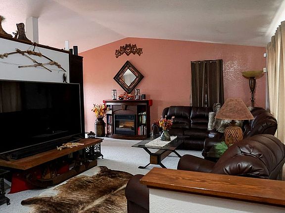 Mountain viewsLow maintenance stuccoIsland and breakfast barCircle drivewayCorian counter topsNew kitchen appliancesOut buildings