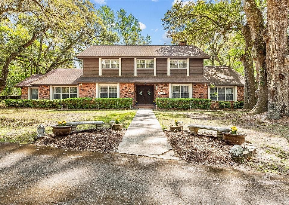 Welcome to this well-maintained 7 bedroom, 4.5 bath home located in the beautiful and centrally located neighborhood of Sunningdale. This impressive residence boasts over 5000 square feet of living space, making it the perfect retreat for a large family or anyone who values spacious living. As you enter the home, you'll be welcomed by the large foyer with staircase to the second level. To your left is the formal dining room and to the right is the den/sitting room. Stepping into the main living area you will love the flow of the floor plan with large family room perfect for relaxing, featuring cozy brick fireplace and built in shelving. The living space is open to the dining area which is overlooked by the spacious kitchen. Additional eat-in area off of the kitchen and huge walk in pantry make for a flexible and family friendly floor plan. The main level includes the oversized primary bedroom suite which is a true oasis, complete with two walk in closets, darling en-suite bathroom, featuring tub, separate shower, and dual vanity. Two additional bedrooms are on the main floor with full bath, this space is perfect for working from home or for use as a quiet study area or guest/in- law suite. The additional generously sized four bedrooms are upstairs and offer plenty of closet space. Two rooms share a full hall bath while the other two share a jack and jill bath with separate vanity spaces. Sitting on an acre lot the wooded outdoor space is just as impressive, with a large backyard that's perfect for outdoor gatherings and barbecues. Located in the heart of Gainesville with easy access to I75 this home is just minutes away from UF, hospitals, dining, shopping, and entertainment. Overall, this 7 bedroom, 4.5 bathroom home is a true gem, offering expansive space, comfort, and style all in one impressive package.