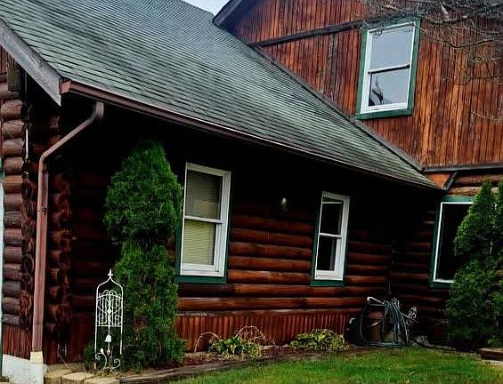 Gorgeous 4 bed, 2 bath log home on 10.11 secluded acres. Conveniently located in Guilford, IN. within Sunman Dearborn School System. Breath-taking views from full length porch, designed for outdoor entertaining. Private woods holds a secret early settlement- Original barnwood used throughout the home in restoration, lending genuine authenticity and charm to rustic vibe. Beautiful primary bedroom, with distinctive high ceiling, walk in closets, attached bath. Two bedrooms up, two down, with bath on each floor. Unique custom bath on first floor offers unique charm with built in out-house style. Large pond for fishing, stands and blinds make for excellent hunting. Two car garage with attic loft, greenhouse and utility shed, fenced garden all ready for quiet homestead living. Sanctuary borders, back of property. Call for details and to schedule your visit.