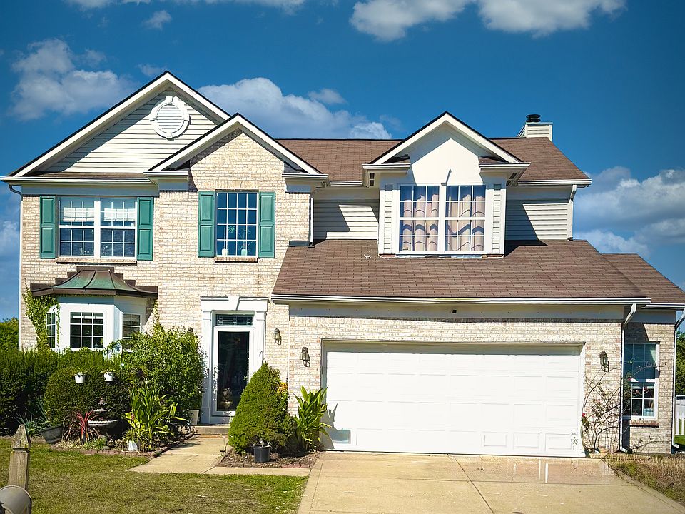 Charming Former Ryland Model on a Quiet Cul-de-Sac This spacious two-story home blends comfort, convenience, and curb appeal. Originally built with two 4-ft extensions for added living space, it offers thoughtful design and long-lasting improvements. Inside, the kitchen and breakfast nook feature updated flooring, a stainless-steel sink and faucet, plus a micro-hood and dishwasher. The HVAC system, sump pump with backup, and GE water softener were replaced in recent years, providing peace of mind for the next owner. Both bathrooms have been refreshed, including the primary suite with updated flooring. Ceiling fans in the great room and primary bedroom add comfort, while pre-wired speakers and surround sound make entertaining easy. The finished basement offers flexibility, including space that could serve as a 5th bedroom, home office, or gym. A wood-burning fireplace anchors the great room, creating a cozy focal point. Outdoors, enjoy a landscaped lawn, wood deck, and an attached two-car garage with opener. Neighborhood amenities include a clubhouse, pool, playground, and walking trails for residents to enjoy. As of Nov 20th, this home has new flooring and paint!! Combining the charm of a former model home with the convenience of modern updates.