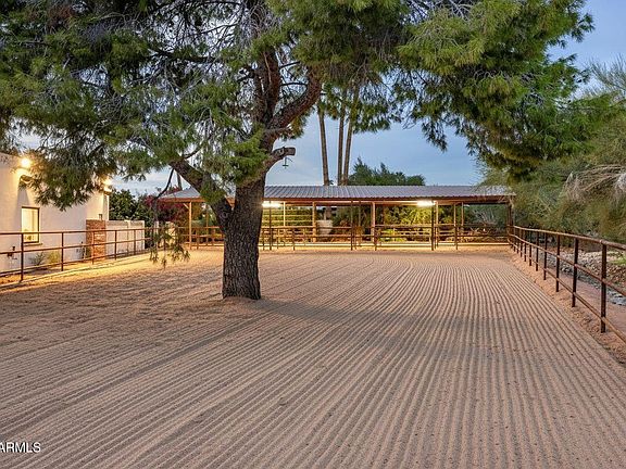 Modern Southwest charm meets everyday functionality in this warm, inviting horse property. Reclaimed wood beams, brick accents & thoughtful custom finishes create a modern/rustic aesthetic that feels both stylish & comfortable. The floor plan includes 2 spacious master suites, a guest bath, mud room, and a dedicated laundry room, ideal for full time living or a lock & leave lifestyle. The seamless indoor/outdoor flow leads to a beautiful lush backyard, covered patio and pool, setting the stage for relaxed evenings, entertaining & Arizona sunsets. Horse owners will appreciate the 4 stall mare motel with turnout and new footing. Additional features include a 2 car garage and plenty of space for trailers and equipment. Location can't be beat and no HOA.