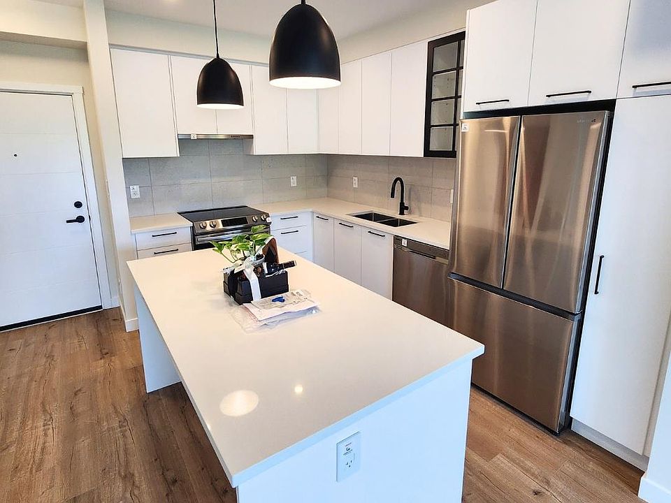 Experience modern living in this bright 2-bedroom, 2-bath condo with a 200+ sq. ft. terrace and stunning mountain views. The open-concept layout features oversized windows, a sleek kitchen with stainless steel appliances and quartz countertops, plus in-unit laundry. The master includes a spa-like ensuite, and both bathrooms showcase elegant finishes. Ideally located near shops, restaurants, parks, and with easy highway access this home offers comfort and convenience in one perfect package.