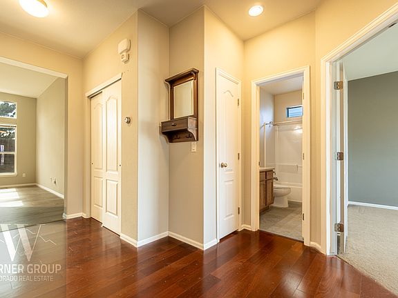 Welcome home to this beautiful 3/3/2 with a bonus room near Stetson Hills. The neighborhood is quiet with quick access to the Powers corridor. Entering the property, you are immediately greeted by the first of 3 bedrooms through French doors. From this room you can gaze at the front range. Right outside this bedroom is the first full bath. Access to the finished garage is down the hall next to the laundry room that provides access to the finished basement. Straight ahead is find the living room separated from the kitchen/dining room combo. Natural light floods these rooms with nearly a side of the house covered in windows. Access to the backyard is off the dining room. The primary bedroom lays on the main level with vaulted ceilings and an en suite bath. Heading downstairs is a massive family room, full bath, the third bedroom, and a bonus room giving the possibility of a fourth "bedroom". This home feels brand new and won't last long. Schedule your showing today!
