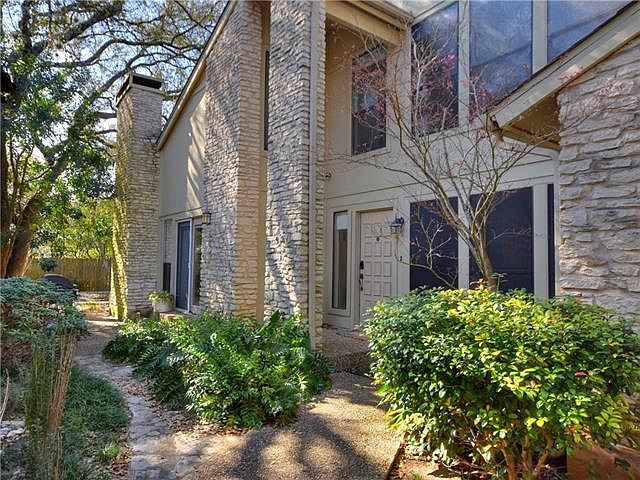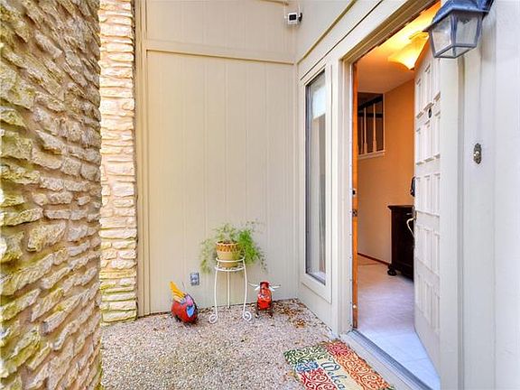 Relaxed living can be found just beyond the gate of this free standing town home, gorgeous courtyard entry-towering trees, recent updates, popcorn removed, granite counters, screened porch, downstairs master bdrm, vaulted ceilings, tremendous storage. Open floorplan w/ abundance of natural light, stone fireplace w/ gaslogs, high ceilings, recent paint & carpet.Upstairs features a 2nd living area to compliment the 2 bedrooms & bath. Don't miss the walk in attic storage. Convenient Northwest Hills location.