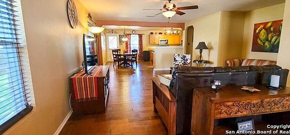 Welcome to this lovely three bedroom home with two full baths located in popular Retama Springs. Located in a low traffic corner unto a cul-de-sac. The primary bedroom is located in the back and is Texas size large, tray ceiling, ceiling fan, full tub/shower bathroom,and walk-in-closet. The secondary bedrooms are spacious with plenty of windows. Rounded Archways lead you unto the hallways. Gather or cook your favorite meal in this well maintained kitchen with appliances three years young. Included is an island which allows for more work space. Make some wonderful memories as you celebrate special events under the extended covered porch with ceiling fan to keep cool. Some upgrades include:* New Roof will be installed** *engineered wood floors*new paint inside and out*well maintained HVAC*newer water heater* The property is located a few yards from the community park that has a walking trail, picnic tables and tons of trees. Close to Retama Park, Forum shopping, IKEA, Rolling Oaks Mall and many other entertainment spots. Easy access to 1604 and I-35 and 3.8 miles to Randolph Air Force Base, 12 miles to FT Sam Houston, 26 miles to Lackland AFB, 18 miles to downtown San Antonio. Pride of ownership to say the least. Make your appointment today! .** Sale includes All appliances-Kenmore 700 Washer/Dryer, Ryobi battery lawn mower, leaf blower, weed wacker and all outdoor lawn care equipment, Refrigerator, Curtain Rods,Stove, microwave, mobile island... Come see for yourself!