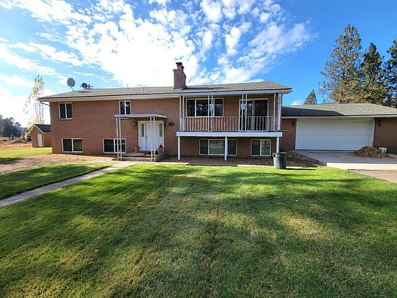 Private and fully fenced 6.45 acres with easy access to freeway. Renovated with completely new roof, gutters, paint, flooring, new heaters and lighting. For the horse enthusiast, there is a large 50x100 riding barn and 40x50 shop for additional horse stalls or parking your toys. 2600 total SF with 4 bedrooms (1 non egress) and 3 bathrooms. 2 bedrooms and 2 bathrooms on main floor with large living area and kitchen. Additional family room and bedrooms on lower level. 2 wood burning fireplaces to help with heating. Back of property had trees/stumps removed for pasture or parking.. Partial sprinkler system covers all grass area front and back. Come out and see this private corner lot and make it your own.