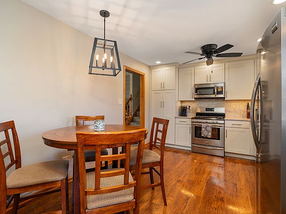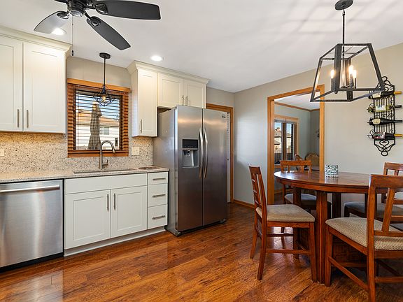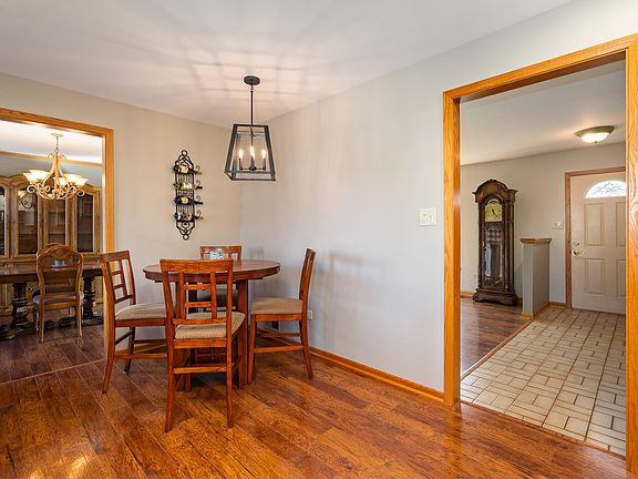 This exceptional tri-level home has been lovingly maintained and thoughtfully updated to perfection. From the moment you step inside, you'll appreciate the elegant craftsmanship, sun-filled spaces, and modern amenities throughout. The stunning remodeled kitchen is a true showstopper-featuring 42-inch white cabinetry with crown molding, gleaming quartz countertops, stainless steel appliances, and a bright breakfast area with a sliding door leading to a large deck with a built-in hot tub-the perfect spot to relax and unwind while overlooking the privacy-fenced yard and sparkling 18-foot pool. Entertain in style in the formal dining room with rich crown molding, or gather in the spacious, sun-drenched living room accented by a new bay window and gleaming hardwood floors. Upstairs, the master bedroom suite offers double closets and a beautifully updated shared bath with a granite-topped vanity and designer finishes. The lower level is an entertainer's dream, featuring a cozy family room with a fireplace surrounded by custom stonework, a wet bar with beverage fridge, and a newly remodeled full bath boasting an oversized shower and sleek quartz vanity. Additional highlights include a two-car extra-deep garage with workbench, a convenient laundry room with sink, new furnace (2024), new roof and gutters (2024), new bay window (2022), and windows replaced in 2016-all ensuring peace of mind and modern comfort. This home blends timeless elegance with contemporary luxury-a perfect balance of style, warmth, and function. Truly a must-see gem!