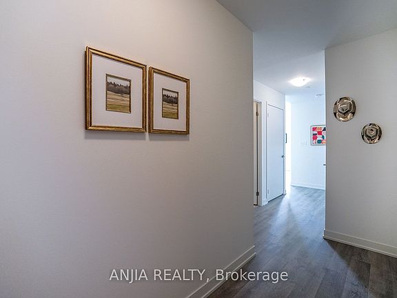 Spacious 2+1 Bedroom Corner Unit With Clear West Views In The Heart Of Downtown Markham! This Bright, Carpet-Free Condo Features Over 1,000 Sq Ft With An Open Concept Living/Dining Area, Floor-To-Ceiling Windows, And A Walk-Out To A Large Balcony. Modern Kitchen Includes Built-In Appliances, Quartz Counters, And Ample Storage. Primary Bedroom With 3-Piece Ensuite, Second Bedroom With Large Window And Closet, Plus A Separate Den With French DoorsPerfect For A Home Office. Conveniently Situated, This Condo Is Within Walking Distance To Markham VIP Cineplex, Diverse Dining Options, Grocery Stores, Supermarkets, And A Variety Of Shops. Just Minutes To VIVA, GO Transit, YMCA, York University Markham Campus, Future FMP, And Highways 404/407. Premium Amenities Include Concierge, Gym, Rooftop Deck, Party Room, And More. Includes 1 Owned Parking Spot & Locker. A Must-See Unit!