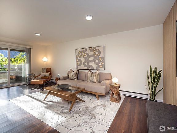 [ 4.99% Interest Rate | West Bellevue Style | BRAND NEW 2025 luxury remodel ] NO Rental Cap & NO Assessments. Move-in-Ready, Turn-Key Mid-Century Modern Retreat. Sunny & Spacious Corner/End unit w/ quiet Zen vibe & brilliant natural light. ALL NEW Kitchen & Appliances, AC & W/D, Tiled Bath, SMART Lighting, Custom Closets, Newer Windows, Storage Unit. Sunset happy hours on your covered deck, cross the street to Bellevue Square & world-class dining & shopping. Summertime is perfect at Bellevue Park, with a sunny POOL & loungers + a courtyard & BBQ to enjoy. Reserved, covered parking outside your East-facing front door. The 30-Day Rental option makes this a popular investment rental. 1/2 mile to Beach & Old Main! Pre-Inspected & VA approved!