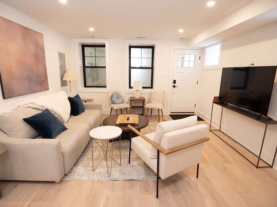This is a luxurious, fully furnished 1-bedroom, 1-bathroom end-unit rowhouse 1 in the bustling H Street corridor. The open kitchen features quartz countertops, a gas stove, and an eat-in kitchen. The bedroom has a California-king sized bed and a spacious closet. The unit also features brand new washer and dryer inside the unit as well as a spacious living area for entertainment with a convertible sofa that can double as a guest bed for visitors.