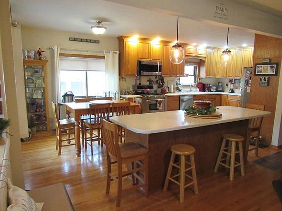 Do not inquire through "Contact Agent" or "Send Message" contact listing agent directly Turn-key, beautiful home conveniently located just blocks from Chadron Public Schools, Chadron State College, and the Aquatic Center. This spacious home has been well maintained and features an open-concept main floor, perfect for entertaining. A gas fireplace in the living room gives the home a cozy feel and opens directly to the updated kitchen. The oversized kitchen island has seating all around and is ideal for food prep or additional seating. Laundry and a 1/2 bathroom are conveniently located on the main floor as well. Off the living area is the fully covered back deck with views of the manicured lawn, built in grilling station, and detached garage. There is also an attached garage for more parking and additional storage. Upstairs are 3 bedrooms, all featuring large closets, and a full bathroom. The downstairs has been completely remodeled and boasts a spacious family room, updated bathroom with walk in shower, storage room, and room for more! Don't miss your opportunity to see this home! Call today!