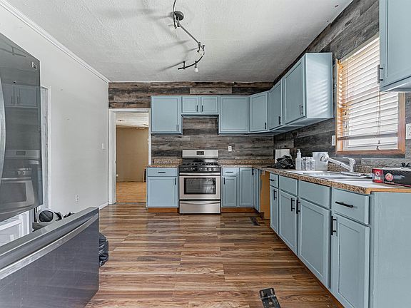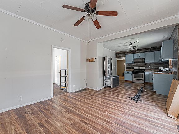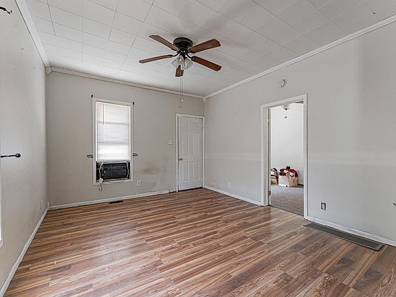 This wood sided 2-bedroom bungalow style home offers ample potential at a price that is hard to beat! Interior boasts an open living/kitchen concept with great floor space, laminate flooring, and range/oven as well as refrigerator to remain, two bedrooms -- rear bedroom measures 15X11, large full bath with laundry facilities (washer and dryer also to remain), and an enclosed 6X8 back porch (not included in total square footage). Property also features a partial basement, covered front porch, fenced backyard with an older storage shed, vinyl replacement windows, and an architectural roof. Sold AS IS, this property offers ample potential for its next owner(s). Affordable living! ** This will need to be a cash purchase given disclosed defects -- please contact agent of your choice for more information. **