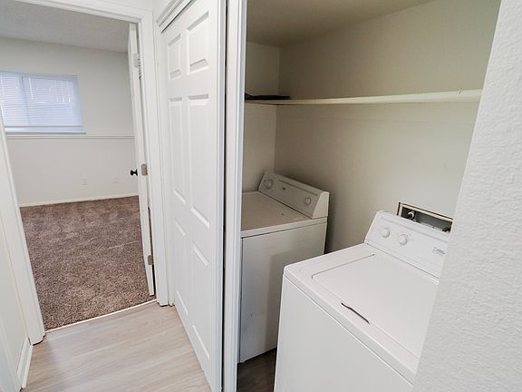 The unit has 2 large bedrooms, 1 bath, dishwasher, disposal, oven, fridge and washer and dryer. Cool down in the hot summer months with central A/C.