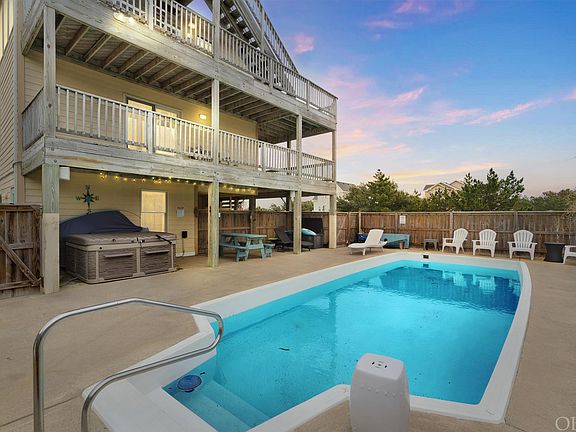 Create family memories for years to come with this beautifully remodeled reversed floor plan 6 bedroom house. Located close to grocery stores and all other kinds of shopping, restaurants and entertainment. Within walking distance to an improved ocean access and walkway. The 3rd floor living area will be the gathering spot for everyone where the dining area table and center island in the kitchen flows nicely with the couches centered in front of the gas log fireplace. There are bedrooms on all three floors so take your pick! The kids will love the bunk rooms and you'll love the en-suites. The ground floor Game Room has a 1/2 bath which also provides entry from the outside close to the pool area and backyard activities. Enjoy the pool and hot tub within the fenced in area around the concrete deck.