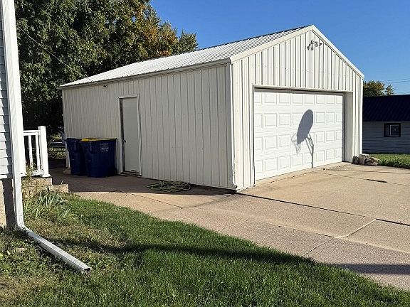 Charming and functional, this home offers 2 main-floor bedrooms plus a 3rd non-conforming bedroom in the finished basement. Enjoy laundry on both the main level and in the basement for added convenience. The lower level also features a full bath, family room, office, and great storage—perfect for a home gym or hobby space. The updated kitchen boasts an impressive pantry and flows easily into the dining and living rooms, where hardwood floors lie waiting to be revealed beneath the current coverings. The primary bedroom includes built-in drawers and a spacious closet. Outside, relax or entertain on the concrete patio, and take advantage of the oversized 20x24 detached garage with loft storage. Nestled on a quiet street, this home offers comfort, versatility, and room to grow.