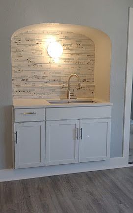 . New kitchen with all new White Euro-look cabinets with hook-up for a gas stove. (Tenants supply appliances).