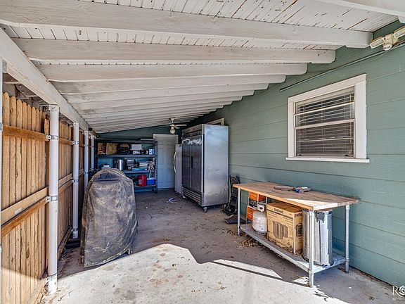 Remarks: This 2-bedroom, 1-bath home offers an open, easy-flow floor plan with central heat and air, perfect for relaxing or entertaining. The living area blends into a cheerful kitchen with bold cabinetry and plenty of workspace, setting the tone for warm, everyday living. Both bedrooms are comfortably sized, and the bathroom features a walk-in shower plus a soaking tub—rare for homes in this price range. Outside, you'll find what truly sets this property apart: a huge .273-acre lot with two separate fenced backyards, a detached garage, and a storage building ready for tools, hobbies, or extra gear. The concrete drive offers plenty of parking under the covered carport, and the backyard invites evenings around a fire pit under mature the stars. Located close to the hospital, downtown shopping, and dining, this home balances city convenience with a laid-back neighborhood feel.