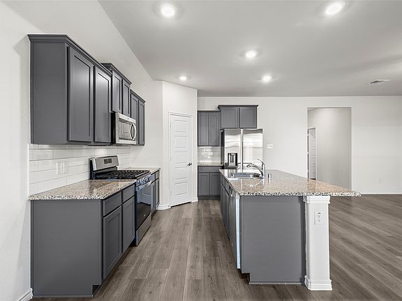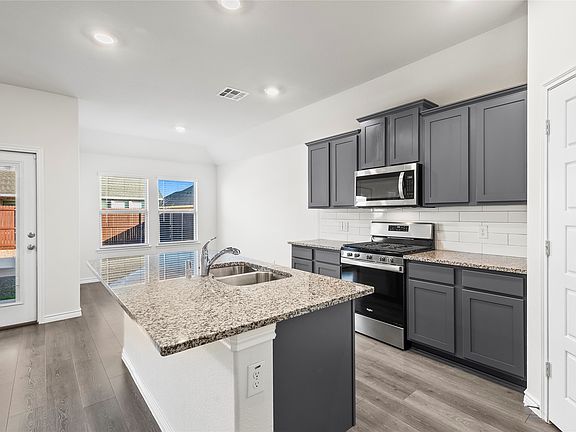 Upgraded to Perfection & Priced at a Firm $325,000! 812 Indigo Rd stands out in Whitewing Trails with distinct curb appeal, featuring a custom stone flowerbed that mirrors the home's aesthetic, enhanced by integrated landscape lighting for stunning evening views. Inside, the open layout flows into a kitchen centered around a granite-style island, but the real value is in the details. Step out to a massive 15' x 20' concrete patio extension, offering significantly more entertaining space than standard builder grades. The garage is a showroom in itself, finished with premium Domino flake epoxy flooring. Practicality meets peace of mind with 5-inch seamless gutters and a professionally installed French drain system. Refrigerator, Washer, and Dryer are included! With community pools and trails steps away, and Downtown McKinney just 15 minutes out, this home is better than new.