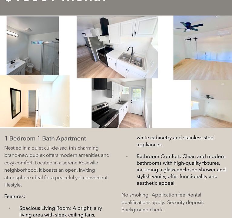 No smoking. Application fee. Rental qualifications apply. Security deposit. Background check .