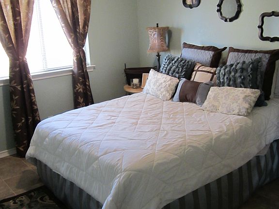 Designer Colors, high ceilings, tiled kitchen counters, open floor plan. Red brick 3 bedroom, 2 bath home with fenced, landscaped yard.
