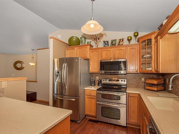 Open Floor Plan With Lots of Upgrades including Wood Laminate Floors, Corian Counter tops w/ Beautiful Tile Back Splash, Stainless Steel Appliances, Vaulted Ceiling, Main floor laundry with Custom Storage , Finished basement w/ Rec Room, Bedroom, 3rd bath, Office and Bonus/Game Room. Fenced back yard with Shed. Back on Market!