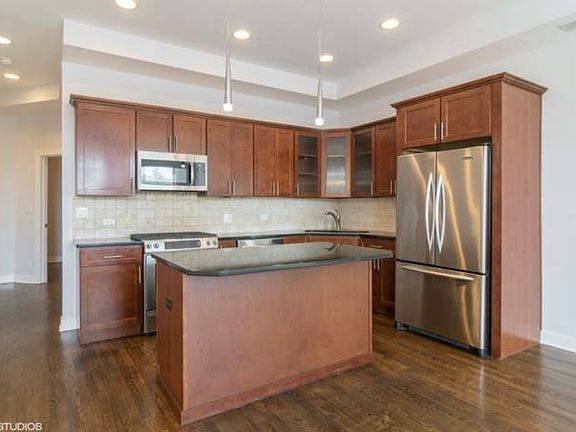 A modern 2 bedroom, 2 bath condo in the best location in Oak Park! This gorgeous condo was completely rehabbed. At over 1200 square feet, this 2 bedroom, 2 bath, is one story up, and boasts a gorgeous kitchen, high end baths, beautiful dark floors, fresh paint and big windows with a southern exposure. Washer/dryer in unit--hooray!! This location is a fantastic, center of town location, across from the train, in the center of everything wonderful about Oak Park.