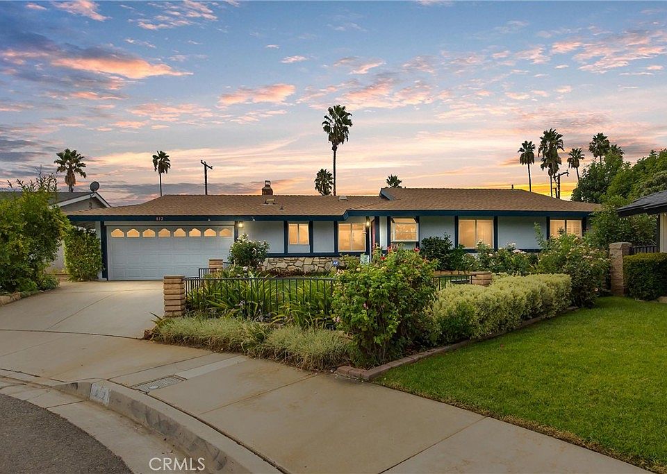 One level 4 Bedrooms +2 Bathrooms (1399 Sq. Ft.) Home. Mountain view. Fireplace in living room. The back yard has a covered patio, large pool with Spa perfect for relaxing and entertain. In addition, the back yard includes a grassy section and a fruitful vegetable garden to enjoy, fresh fruits and vegetables. Lot is (12,600 Sq. Ft.). House is on Cul-de-sac. Convenient location near shopping and a short drive to Charming and historic downtown Redlands. Solar Panels are paid for must see.
