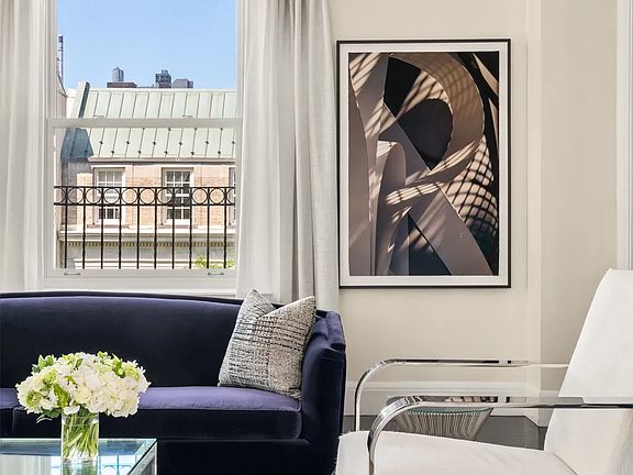 The quintessential embodiment of iconic Park Avenue living, this elegant four bedroom, five and a half bathroom duplex architected by Jose Ramirez sprawls approximately 4,000sqft. Impeccably renovated with flawless taste and the finest finishes, this unparalleled residence perfectly balances living and private spaces and feels more like a house than an apartment. Its jaw-dropping scale is made apparent upon entry as you are greeted in a formal gallery with a sweeping circular staircase, Dolomite Marble floors and signature Lindsay Adelman light fixtures. An expansive corner living room boasts a wood-burning fireplace, western views over Park Avenue, as well as northern views of the townhouses of 75th Street. High-gloss wood flooring throughout leads to an adjacent, similarly large dining room. A handsome, wood-paneled library with custom millwork and a marble-clad powder room sits tucked away on the north side and is crowned by a custom marble sink vanity. Unmatched in design and detail, the spacious, eat-in kitchen leaves no detail unconsidered. Bright and sunny, it spotlights custom hand-painted wood cabinetry, white Caesarstone counters, stunning Calcutta Gold marble slab detailing and Dornbracht fixtures. Conceived with the most discerning home cook in mind, state-of-the-art appliances include a Sub-Zero refrigerator and freezer, two Wolf ovens, induction stovetop and microwave oven, and two dishwashers. A seating area with TV sits within the room for relaxed entertainment. Tucked inside is a butler's pantry with Calcutta Gold countertops and backsplash, a Lacava sink, and ample storage. Completing the fifth floor is an additional bedroom, behind the kitchen, with adjacent full bathroom, as well as a full laundry room with Maytag washer and dryer. Its own private oasis, the palatial primary suite has a wall of discreet, flush closets, custom millwork and sits on a corner overlooking Park Ave. and 75th St. The ensuite bathroom is a study in minimalist chic, with a Boffi soaking tub, vanity with custom fixtures, an open glass shower, Tadelak-treated walls and poured Terrazzo flooring. Three additional similarly large bedrooms all feature custom millwork, including built-in desks, ample storage and ensuite bathrooms with Waterworks fixtures and Porcelanosa and Artistic tiling. Storage abounds, with a cedar closet, additional walk-in closet and a linen closet rounding out the top floor. Designed by the legendary architect James E.R. Carpenter, 812 Park Avenue is one of Manhattan's most prestigious cooperatives. Located on venerable Park Avenue, this home is steps from the world-class museums, restaurants and shopping that Lenox Hill is known for. Amenities include a private storage room and a state-of-the-art gym. 2% flip tax paid by the buyer. Up to 30% financing.