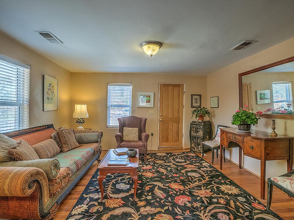 Classic North Valley charmer exudes warmth & coziness. Adobe/frame home built in the 1931 detailed with original hardwood floors, hand plastered walls & solid wood interior doors. Upon entry, the graceful arches draw you into the Living Room and beyond. Flex 2nd living area may be used as an office, formal dining room or sitting room with built-in shelves. Sweet updated Kitchen overlooks the back yard with corner breakfast nook. Master bedroom with 1/2 bath. Comfy 2nd bedroom & full bath complete this beauty. Updated windows, wood blinds & cellular top down bottom up shades. Updated electrical & plumbing. Fully fenced Yard with two gates in front. Detached 160 s.f. utility room/workshop/shed in back. Your chance to own a piece of history in Los Ranchos tucked away with easy Paseo access.