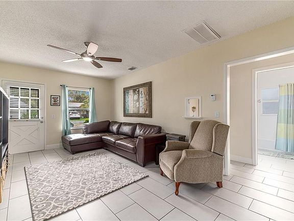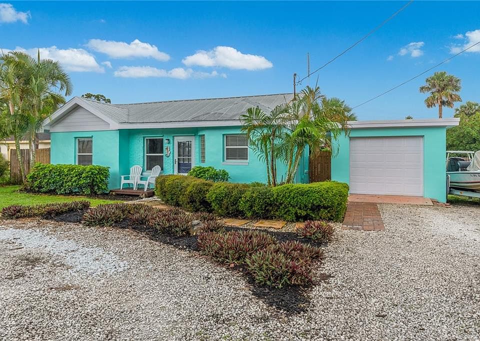 Fantastic location near trendy downtown Stuart! Mid-Century concrete block home with metal roof, lovingly updated and upgraded throughout. Tile floors in subway pattern in living areas, hand scraped Eucalyptus Engineered Hardwood Flooring in bedrooms. Kitchen has stainless steel farmhouse sink with new gooseneck sprayer faucet, all new Whirlpool appliances (2017) and bathroom has been completely gutted and stylishly renovated. Newer windows, A/C 2017, freshly painted exterior 2018. 1 Car garage attached via breezeway, brick path and circular drive, plus a boat driveway to store your weekend pleasure craft. Expansive, fenced back yard with fruit trees and large covered deck with built-in bench seating and an open front porch extends your living space to the great outdoors. Pond and park near by. $250 per pet nonrefundable fee. Make this your Home Sweet Home today!