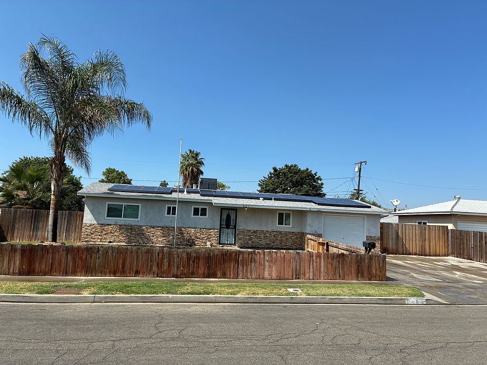 This newly remodeled home is located on the east side of Hanford in a quiet neighborhood near Lee Richmond elementary and JFK jr high school. Part of garage has been converted to living room for More living space. Kitchen is equipped with new gas stove, refrigerator and microwave. Enjoy a very spacious outdoor backyard space with RV Parking full covered patio and Large Pool. Pool service included. Solar Owned. Pets on approval