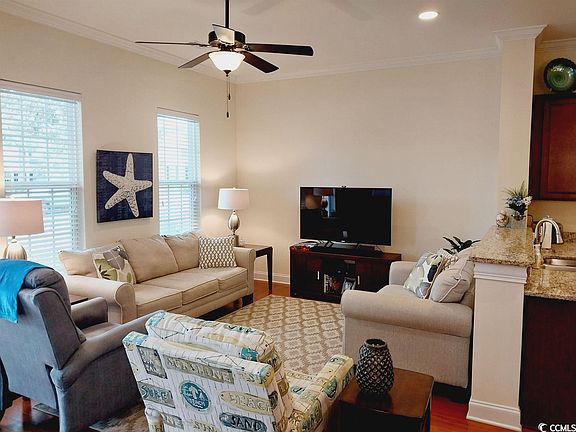 This is your chance to own the premier 3-bedroom, end unit townhome along Shine Avenue in The Market Common; close to all the events and activities yet tucked away in an ideal community setting. Make this your permanent residence, vacation home or income generating property. This townhome is move-in ready and in meticulous shape; no need to wait 5 or more months for construction to be completed. You can move right in and start living life at the beach and enjoy all that the area has to offer. The townhome is only 8 years old and features a 2 car garage and a sizable front porch with upgraded Trex decking and a fabulous view of the neighborhood to relax and take in the wonderful autumn breeze! The garage will come in handy for your golf cart, since the neighborhood is conveniently located only a few minutes to the Myrtle Beach State Park, the dog park, several grocery stores and all the dining, shopping, parks and night life opportunities that The Market Common has to offer. Enjoy a movie at the theater or a good book and a cup of coffee at Barnes and Noble without ever having to leave the area. The spacious master bedroom features 2 customized walk-in closets and large ensuite bath with a connected laundry room. Both levels have 10-foot ceilings which makes for a beautiful open setting where natural light can flow through the tall windows. The downstairs features beautiful LVP flooring and offers plenty of room to entertain. You will love the many upgrades, which include a built in bar with an attached fridge. The HOA includes one of the area's best amenity centers, which is less than a mile away and features a large pool, lazy river, hot tubs, and a fitness center. Are you ready for a nice swim followed by a nap on one of the many hammocks? The HOA fee includes exterior insurance, the amenity center, landscaping, pest control, cable TV and internet. Call today to schedule your personal showing, you don't want to miss out on this opportunity!!