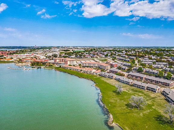 INVESTMENT OPPORTUNITY! Lovely, updated condo with floor-level entry located three doors from a great party pool. This home has a large family room with a fireplace and open floor plan. Granite countertops in the kitchen with sleek appliances, self-closing drawers, and slide out drawers in the pantry. Enjoy the large, covered balcony for morning coffee and views. Big primary bedroom on the first floor with private patio and bath, with another oversize bedroom downstairs, too. Upstairs has a third bedroom with an en suite full bath, a huge loft and a wonderful Harry Potter closet for the kids or just extra storage. There is a library for the reader in the family. Extras include plantation shutters, glass-front cabinets engineered wood flooring. Easy, fun -living in gated complex. located next to The Harbor entertainment district, Lake Ray Hubbard and marinas. George Bush and I 30 are close. Only 25 minutes to downtown Dallas! Location, location, location!!