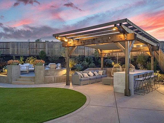 If you've been waiting for a beautifully upgraded home with an entertainer's dream yard, this is the one. 4 years-young, this home boasts nearly 2600ft² of living space, with designer touches abound and an easy sense of pride in ownership. Light & bright, the kitchen features a Marble herringbone backsplash, pot filler, and large farmhouse sink. LVP flooring throughout the lower level, which includes a sizeable den. Upstairs has 4 bedrooms plus a second family room/loft. Extra cabinetry added in many places, as well as tile accents. Dual vanity master bath with tub, shower, and large walk-in closet. Oversized 3-car garage for all your needs. Tankless hot water, owned solar, plus so much more. And let's talk about that yard! You will be the popular hangout spot with this magnificently designed & crafted yard. Tiered concrete seating, 46,000 BTU natural gas firepit, custom wood pergola with swinging egg chairs, built-in bar, and even a stubbed gas line to build your own custom outdoor barbeque. Low maintenance landscaping with synthetic turf and automatic drip irrigation. And to top it all off, no neighbors behind. Fantastic quiet location between Ridgemark & San Juan Oaks, with easy access to 101 via 156. If you're a picky homebuyer who wants it all, this is the home for you.
