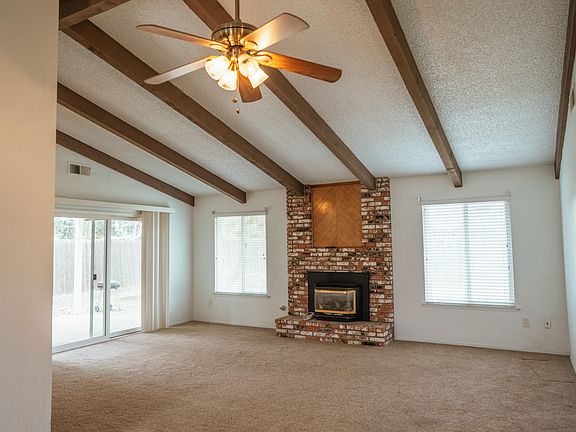 New on the market is this charming home in Exeter! Beautiful mature landscaping with large trees in front and back yards. Elegant double door entrance in this 3 bedroom, 2 bath home. Living room has vaulted ceilings with wood beams and gas fireplace. Master suite has lovely picture windows that add plenty of natural light. Indoor laundry room has back door that leads to side and back yard. This lovely home won't last long!